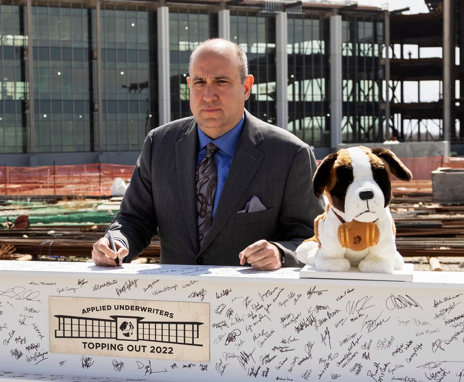 Steve Menzies provides progress updates for Applied Underwriters Operational Headquarters at the Campus Topping Out ceremony.